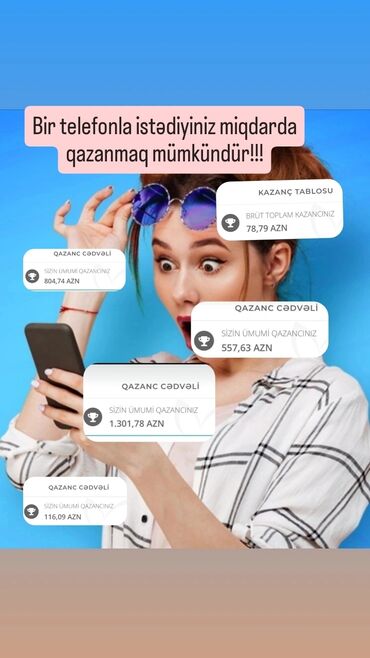 Xanımlar üçün əlavə gəlir imkanı! - 24 saat ərzində real gəlir qazanmaq fürsəti - WhatsApp vasitəsilə müraciət imkanı - Tam etibarlı, sadə və sürətli proses Qeyd: Elanı vizualda göstərilən məluma...