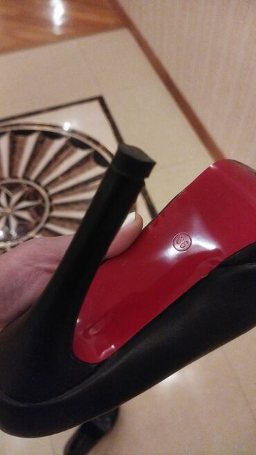 Qadın klassik tufliləri - Rəng: qara, incə parıltılı tekstura - Model: platformalı, hündürdaban (klassik konusvari daban) - Altlıq: qırmızı rəng - Daxili: dəri içlik - Ölçü: 36 (hər iki cütündə 36...