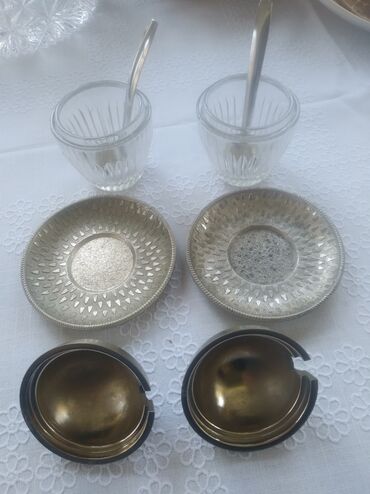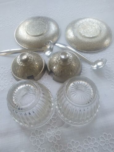 YeniXardal qabları,sous,duz,istiot,şəkər tozu və s.üçün.Sovet dövrü istehsalı,1980-ci illər.Melxior və qalın 2-qat şüşə materialdan,ağırdırlar.İstifadə olunmayıblar,yeni,defektsiz.Qiymət cütünə aid və sondur!!!