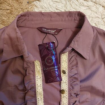 Hafsa Mina qadın 2li dest - Rəng: bənövşəyi - Ölçü: XL (etiketdə göstərilib) - Model: uzun kəsim, düyməli, klassik yaxalı - Material: xırda teksturalı, nazik və nəfəsalan parça (fotolardakı faktu...