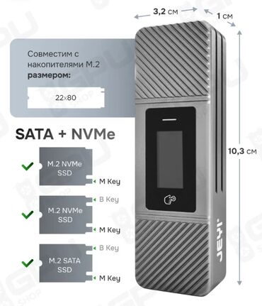 SSD box dual "M.2 Nvme Sata TypeC" Bagli qutuda Ekranli M2 ssd ucun aluminium qab M.2 NVMe / SATA SSD Enclosure, USB 3.2 Gen 2 10Gbps External M2 Adapter ZEMANETLI !!!