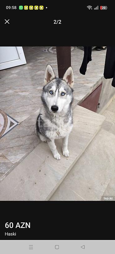 Sibir haskisi (Husky) – gözəl boz-ağ rəngli, buz kimi mavi gözlər. - Aktiv, enerjili, açıq havanı sevən cins - Zəkalı və tez öyrənən, istiqrarla məşqə uyğun - Uşaqlarla və ailə ilə ünsiyyətcil, sos...