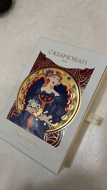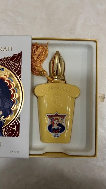- Flakon: Qızılı başlıqlı, sarı rəngli, klassik Casamorati dizaynı və saçaqlı bəzək