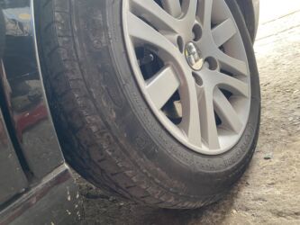 Avtomobil təkəri və diski - Təkər ölçüsü: 195/65 R15 (yan divarda qeyd olunub) - Şin tipi: yol/ümumi istifadə üçün, radial - Rəng: qara - Disk: 5 boltlu, çoxşüalı dizayn, qara rəngli (ehtimal ki, ...