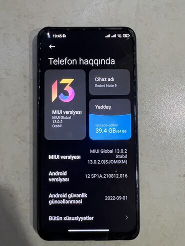 Satılır Redmi note 9 heç bir problemi yoxdu ciddi alıcılar narahat eləsinlər