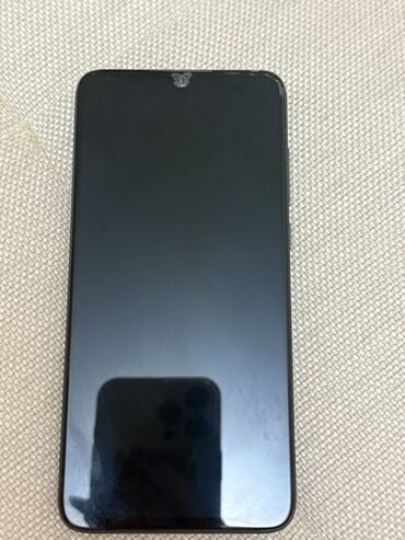 Xiaomi smartfon - Rəng: qara, parlaq arxa səth - Ekran: damla‑notch ön kamera çıxıntısı olan tam ekran panel - Arxa kamera sistemi: sol hissədə vertikal düzülüşlü 3 linza və LED fləş - Brend loqos...