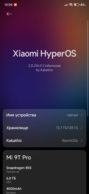 - Daxili yaddaş: 128 GB (şəkildə 72,7 GB istifadə olunub)