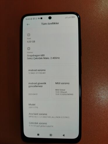- Sistem: MIUI Global 13.0.12 (stabil), Android 12 (12 SKQ1.211103.001)