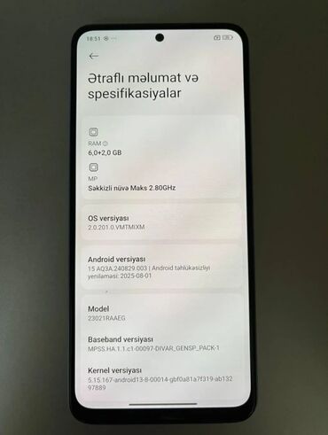 Smartfon – böyük ekranlı, mərkəzdə dairəvi ön kamera dəliyi olan model. Xüsusiyyətlər: - Tam ekranlı, nazik çərçivəli displey; ekranın yuxarı mərkəzində “punch‑hole” ön kamera. - Android sistemli ...