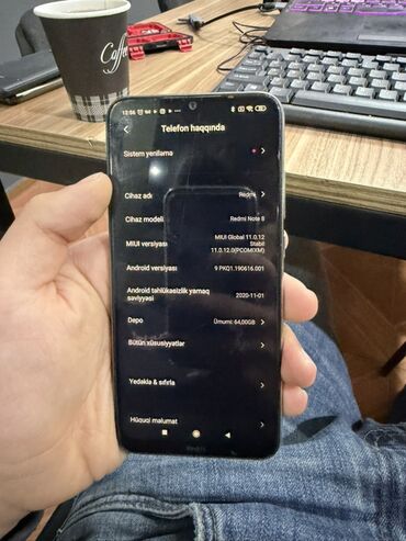 - Sistem: MIUI Global 11.0.12 (Android 9 əsasında, ekranda “Telefon haqqında” bölməsi görünür)
