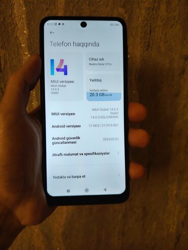 - Sistem: MIUI Global 14.0.3 (Stabil), Android 12 (SKQ1.211019.001)