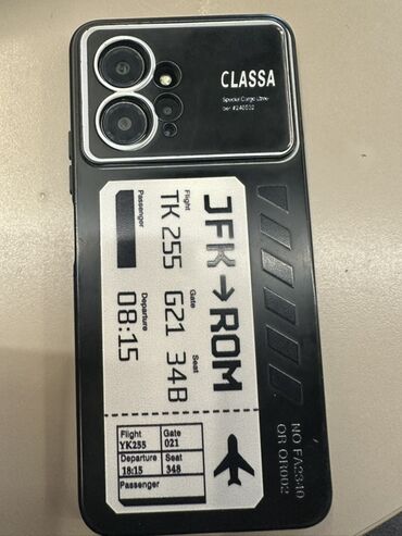 - Telefon üçün “CLASSA” brendi stilində avia‑bilet dizaynlı qoruyucu örtük/korpus (JFK → ROM motivli)
