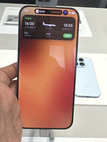 - Ekran: kənarlara qədər geniş tam ekran panel, yuxarıda mərkəzi kapsul şəklində kamera/sensor sahəsi. İnterfeys bildiriş və uçuş məlumatı kimi dinamik göstəriciləri dəstəkləyir.