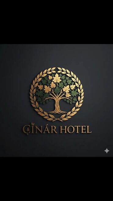 • Mehmanxana və premium xidmət sahələri üçün 3D/embossed görünüşlü emblem – “Çinar Hotel” kimi zərif laurellı ağac simvolu