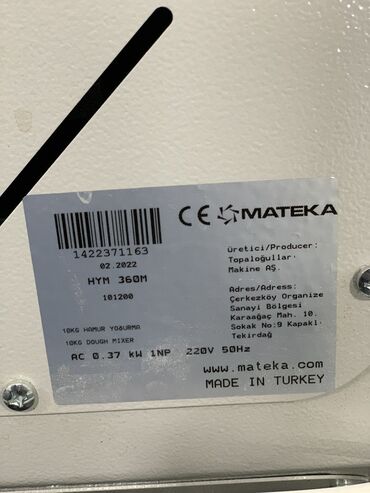 Xəmir yoğuran 20kq xəmir verir, 220V. Mateka Türkiyə istehsalı. Yeni✔️