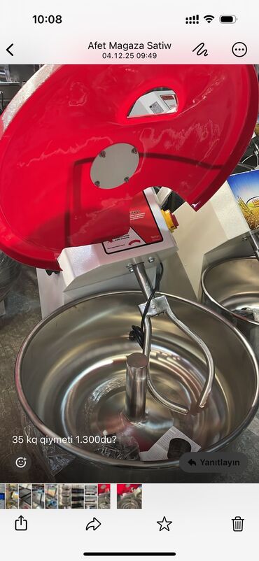 Xəmir yoğuran aparat Türkiyə istehsalı 5 kq 750 AZN , 10 kq 850 AZN , 15 kq 950 AZN , 25 kq 1100 AZN , 35 kq 1300 AZN , 75 kq 1850 AZN