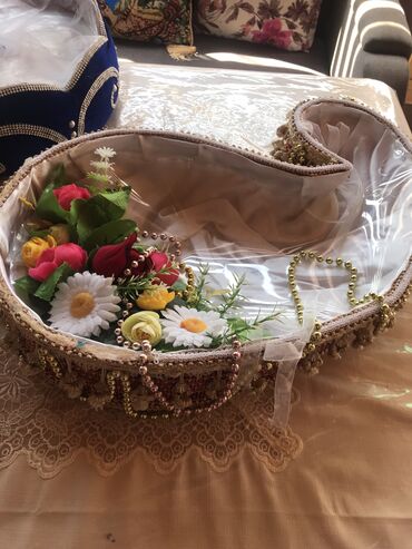 Xonça, dekor üçün səbət. 1 dəfə istifadə olunub. İkisi birlikdə 15 azn.