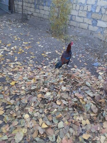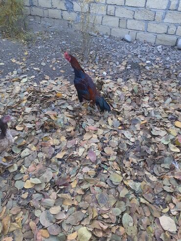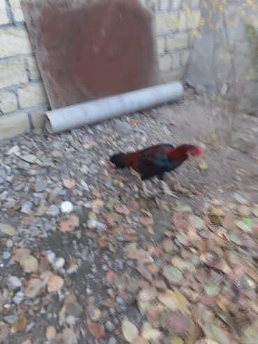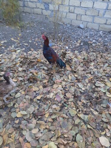 Məhsul: Qara-qırmızı rəngli döyüş tipli xoruz Təsvir: - Uzunboyun, güclü bədən quruluşu, hündür ayaqlar - Lələk rəngi: qara əsas, kürək və boyun hissəsində qırmızı-qızılı tonlar - Quyruq lələkləri...