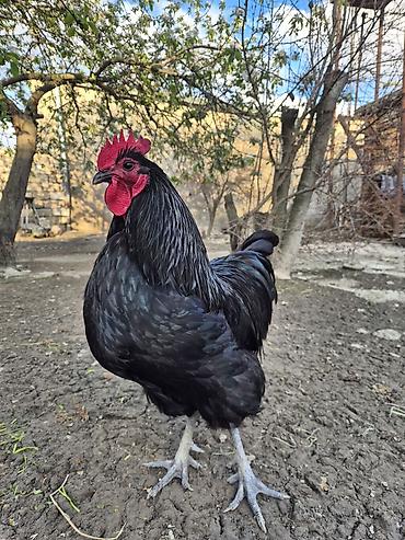 Austrolop xoruzu 3 illikdir sağlam heyvandir - Tam qara lələk örtüyü, iri quyruq və parlaq qırmızı daraq-sırğa - Güclü bədən quruluşu, hündür dayanış və uzun quyruq lövhələri - Açıq sahə və həyət...