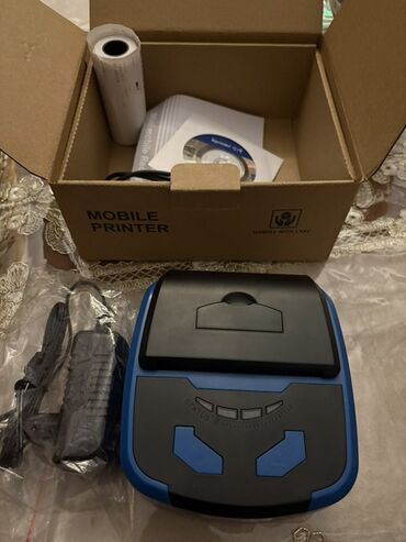 - Qutuda: printer, enerji adapteri/şarj cihazı kabeli, termal kağız rulonu, istifadəçi təlimatı və sürücü disk