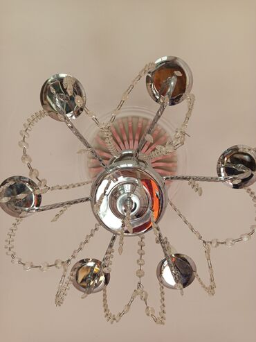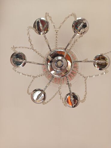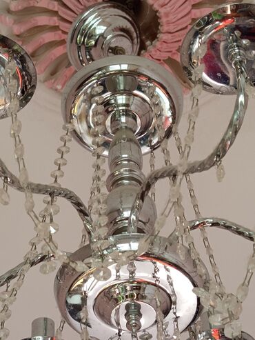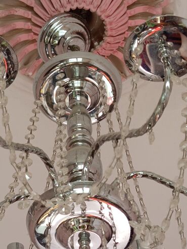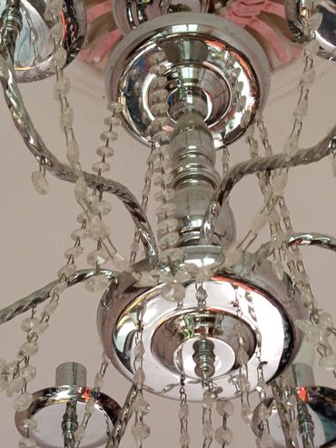 Bu çilçıraq gumusu rengdir və billur muncuq bəzəkləri ilə tamamlanır. Altı qolu lampa tutacaqları üçün nəzərdə tutulmuşdur və hər qolun sonunda dairəvi lampa qabı yerləşir. Çilçırağın mərkəzi sütunvari dizayna malikdir. Muncuqlar hər qoldan və mərkəzi hissədən asılaraq işıqlandırmaya zəriflik qatır. Çilçıraq otağa müasir və zərif bir görünüş verir, müxtəlif interyerlər üçün uyğundur.kocle elaqeli tecili satilir.3lampasi isleyir.o biri 3lampanin patronu deyisilmelidir.patron ucuzdur50q
