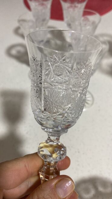 Xrustal qədəh dəsti. Klassik sovet/retro estetikası. Heç bir deffekti yoxdur. Ümumi sayı 16. Hamısı birlikdə 30 manat. Böyük ölçü uzun saplı, şampan/qazlı içki badələri 4 ədəd... Orta ölçülü likör...