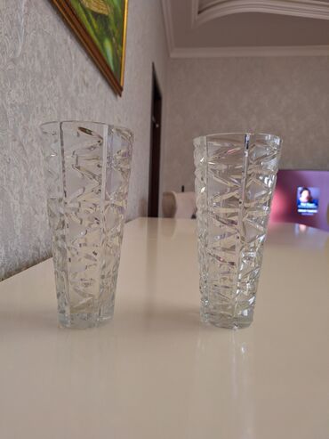 Kəsma naxışlı xrustal vazalar. Hər biri yenidir, istifadə olunmayıb. Böyük olan - 70 azn Daha kişik olan - 60 azn Klassik üslub sevənlər üçün elegant dekor elementi. Hədiyyəlik və ev dekoru üçün...