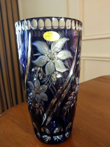 Kəsmə naxışlı kristal vaza - Material: orijinal kristal şüşə - Üst hissədə “Kristal” etiketi mövcuddur - Klassik kəsmə ornamentlər: ulduz, romb və şüa motivləri - Qalın divarlı, ağırlıqlı korpus –...