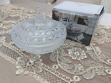 Büllur qab – qapaqlı, dekorativ - Material: qalın şüşə/büllur -
