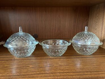 Хрустальные вазы , со старых времен. для варенья ,конфет и для фруктов цены разные . большая ваза 30 ман .маленькая 10 ман
