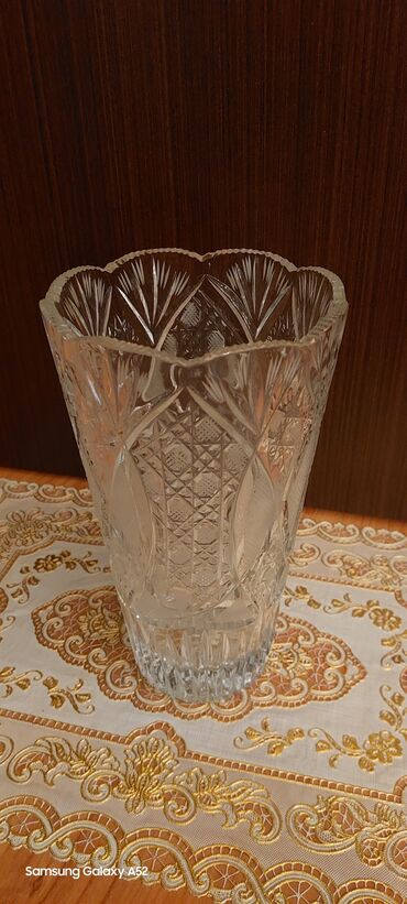 Ünvandan götürməXtustal vaza. Əl kəsimi. Hündürlüyü 25 sm. Qutusu var. 10 manat. Ünvandan götürülmə.