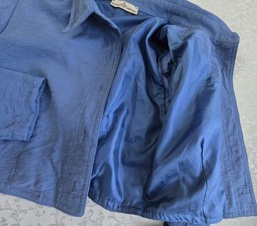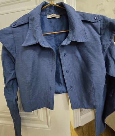 Qadınlar üçün qısa cins gödəkçə - Model: “Loco Angels” yazılı, oversize kəsim - Material: sıx denim (açıq mavi/acid-wash efekti) - Dizayn: qısa krop uzunluq, xam kəsimli alt kənar və manjetlər, ir...