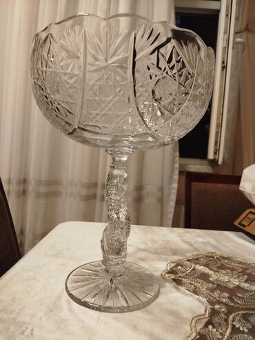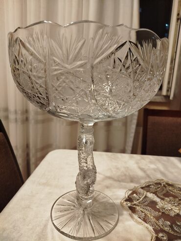 Kəsilmiş naxışlı kristal meyvə/süfrə qabı
