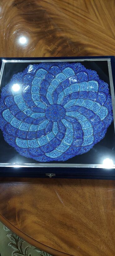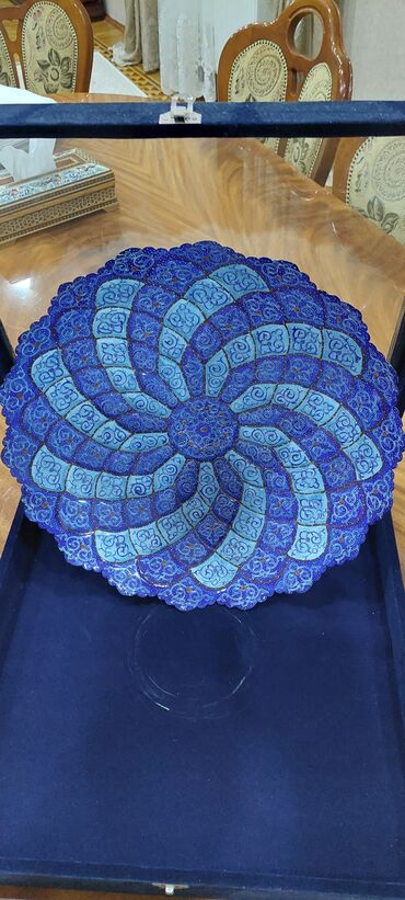 Mavi rəng tonlarında şərq motivli dekorativ qab/boşqab. Keramika