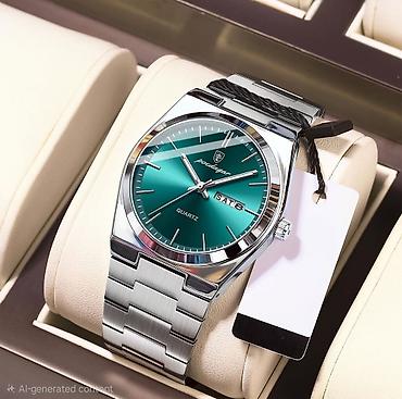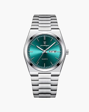 💎Dizayn: Gümüşü və qızılı (Bicolor) lüks metal kəmər. Tam Orginal Poedagar 75AZN YOX SADƏCƏ 59AZN🔥 🔵Siferblat: Möhtəşəm dəniz göyü (və ya yaşıl) rəng, işıqda parıldayan tekstura. 📅Funksionallıq...