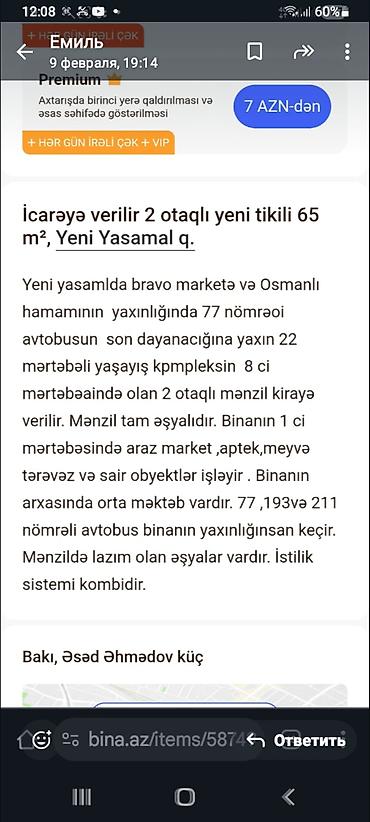 Suraxanıda 106 nömreli avtobusun son dayanacağina yaxin ərazidə...Təzə,sakit məhlədədi..Həmin 106 Qarayev metrosunun yanina gedir.2 otaqli,əşyalu,orta təmirli.Kombi istilik sistemi var...İnterneti ...