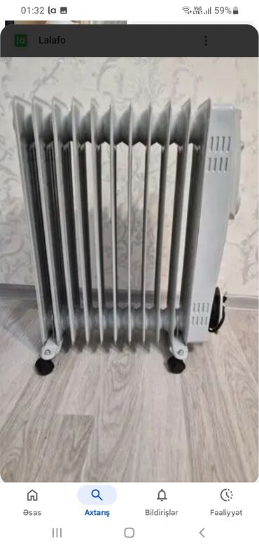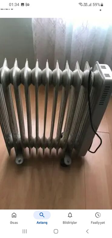 Yağlı radiator – elektriklə işləyən, bölməli (təxminən 9–11 seksiyalı) portativ isidici.