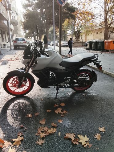 Sport/naked tipli motosiklet – qara/qırmızı dizayn Xüsusiyyətlər: - Həcm: 200–250 cc sinfi görünüşü (hava ilə soyudulan tək silindrli benzin mühərriki) - Ötürmə: sürətli mexaniki qutu, ayaqla idar...