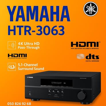Yamaha HTR-3063 AV Receiver - 5.1 kanal Surround Sound – ev kinoteatrı üçün əhatəli səs - 4K Ultra HD pass-through dəstəyi – 4K mənbələri TV-yə itkisiz ötürmə - HDMI interfeysi – çoxlu HDMI giriş/...