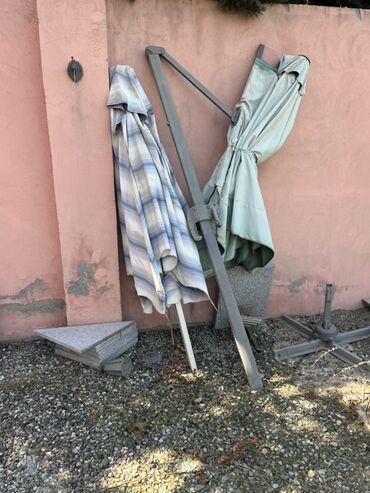 Bağ/terrasa üçün böyük yan dayaqlı (sürgülü) günəş çətiri dəsti.