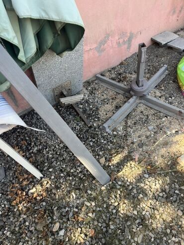 Şəkillərdə olan bütün hissələr birlikdə verilir. Ölçülər təxmini: çətir diametri böyük ölçülü, dayağın hündürlüyü təxminən 2–2.5 m. Rənglər: mavi-ağ zolaqlı və açıq yaşıl örtüklər, boz metal karkas.