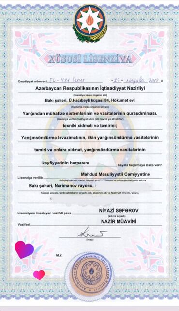 Lisenziya və sertifikat verilir.