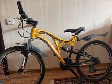 Şəhər və off-road üçün uyğun dağ velosipedi - Rəng: sarı-qara, sarı relyefli təkərlər - Çərçivə: amortizatorlu ön çəngəl, arxa amortizator (full-suspension) - Təkər ölçüsü: təqribən 26" - Ötürmələ...