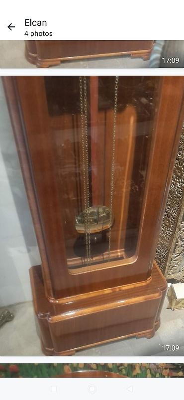 İşlənmiş divar saatı, mexanizmi təzədir, taxtadan, əla vəziyyətdə. Ünvan: Əhmədli, Xəzər dairəsi