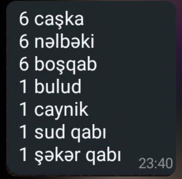 Qaşıq dəsti 12li, ağlı-qızılı. Almaniya istehsalıdir. 24 karat qızılı. Çamadanda. 150 man. Ünvan Məmmədli qəsəbəsi.
