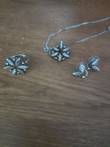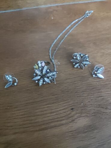 - Rəng: gümüşü metal, daşlar şəffaf-ağ parlaqlıqda