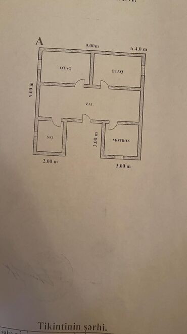 - Ümumi ölçülər: 9.0 m x 9.0 m, h=4.0 m