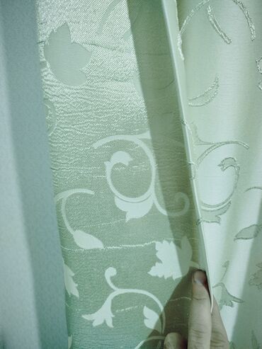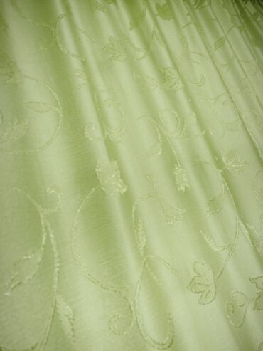 Yaşıl-açıq tonlarda dekorativ naxışlı pərdə