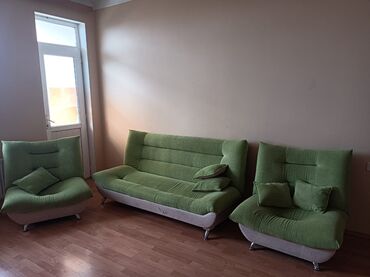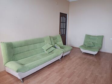 2 nəfərlik divan və bir ədəd kreslo. Divan açılır, fransız mexanizmi deyilən mexaniki açılaraq, çarpayı olur.Üstündə 3 ədəd yastıq verilir. Qiyməti 120m. Yasamal . 9 mərtəbəli binanın 9 cu mərtəb...