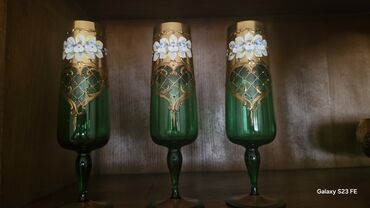 Digər həcmŞərab və ya şampan üçün istifadə edilə bilən üç ədəd yaşıl rəngli qədəh dəsti. Bu qədəhlər, əl ilə çəkilmiş çiçək naxışları ilə bəzədilmişdir və qızılı rəngli detallara malikdir. Yüksək qabartma naxışları və detallı işləmələri ilə xüsusi günlər və ya ev dekorasiyası üçün uyğundur. Hər bir qədəh uzun ayaqlı dizayna malikdir.